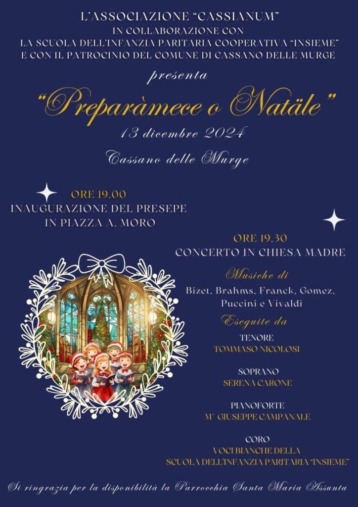 L’iniziativa è patrocinata dal Comune di Cassano delle Murge e realizzata in collaborazione con la Parrocchia Santa Maria Assunta.