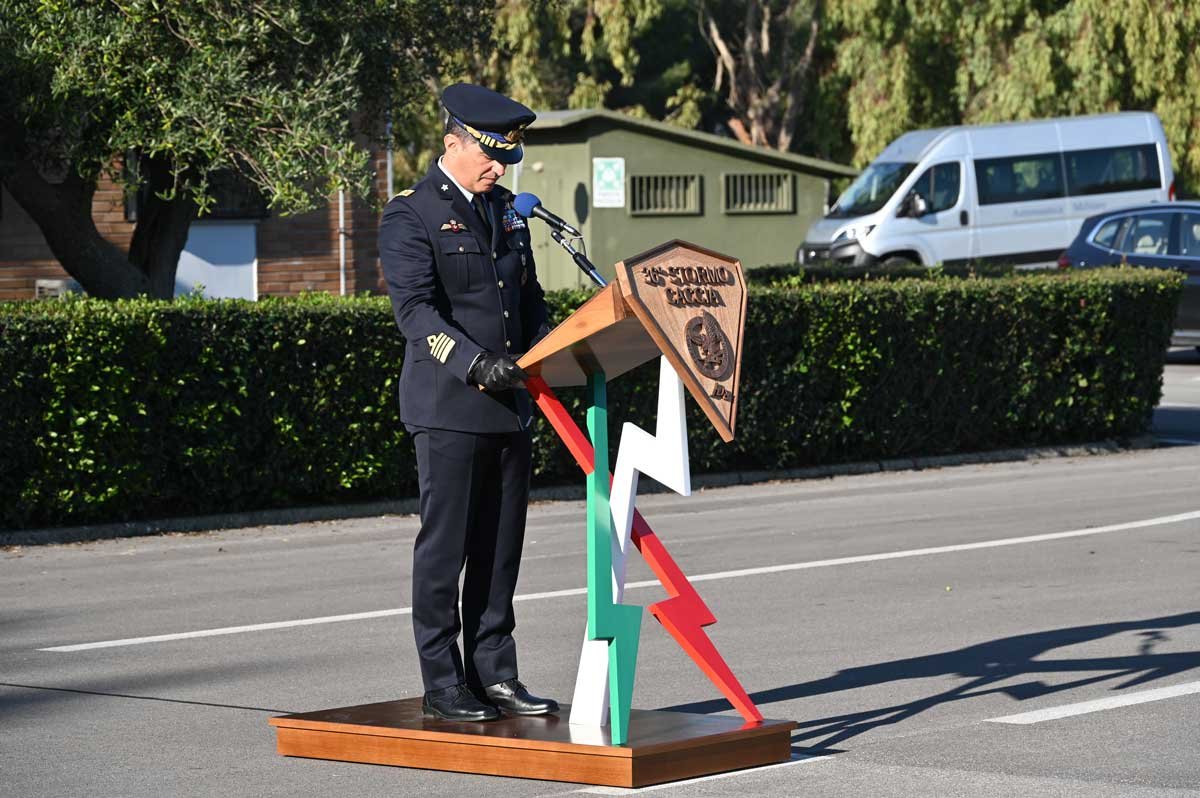 Concludendo il suo intervento, il Comandante ha evidenziato come la realtà operativa del 36° Stormo Caccia assuma un ruolo sempre più rilevante grazie al costante impegno, alla professionalità e alla passione del personale che opera al servizio della Nazione, a giusta memoria delle gesta dei pionieri del passato.