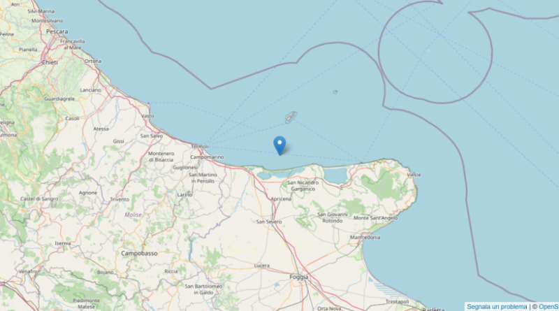 Secondo l’INGV (Istituto Nazionale di Geofisica e Vulcanologia) si è trattato di un sisma di magnitudo 4.7 avvenuto nella zona della Costa Garganica (Foggia), nell’Adriatico, al largo delle coste foggiane, in corrispondenza di San Nicandro Garganico, con epicentro ad una profondità di 10 km.