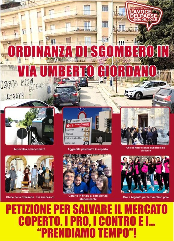 Ordinanza di sgombero in via Umberto Giordano per motivi di pubblica e privata incolumità