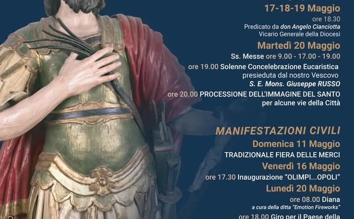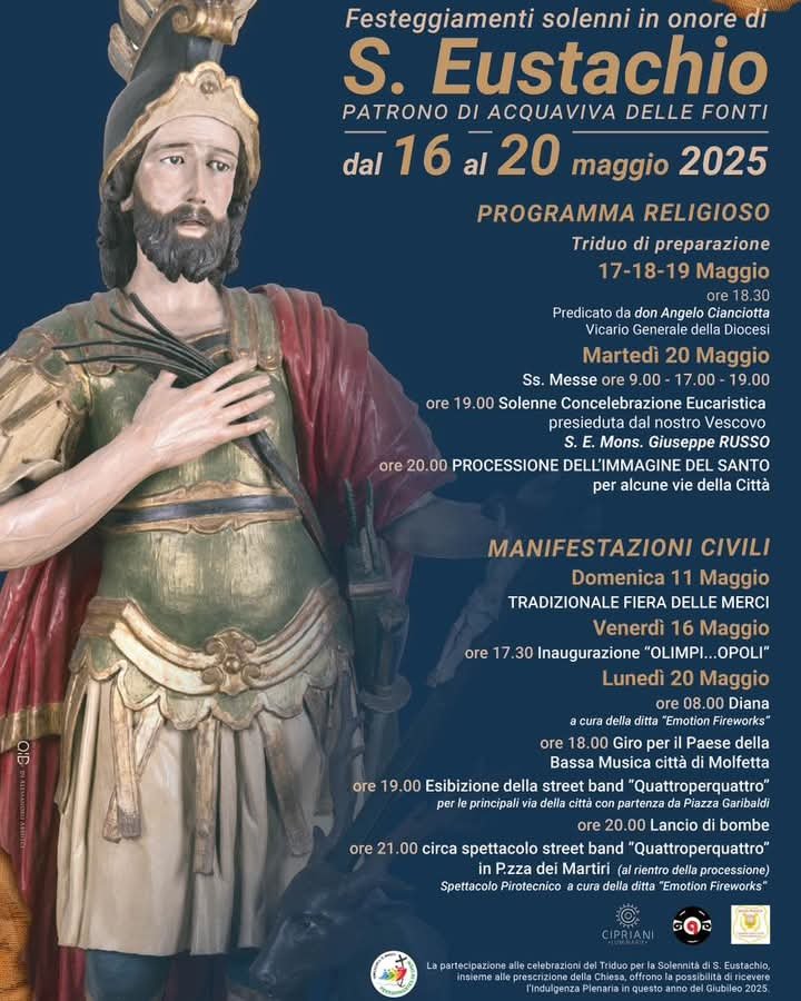 Anche quest’anno la nostra comunità si prepara a vivere con devozione i solenni festeggiamenti in onore di S. Eustachio, patrono di Acquaviva delle Fonti.