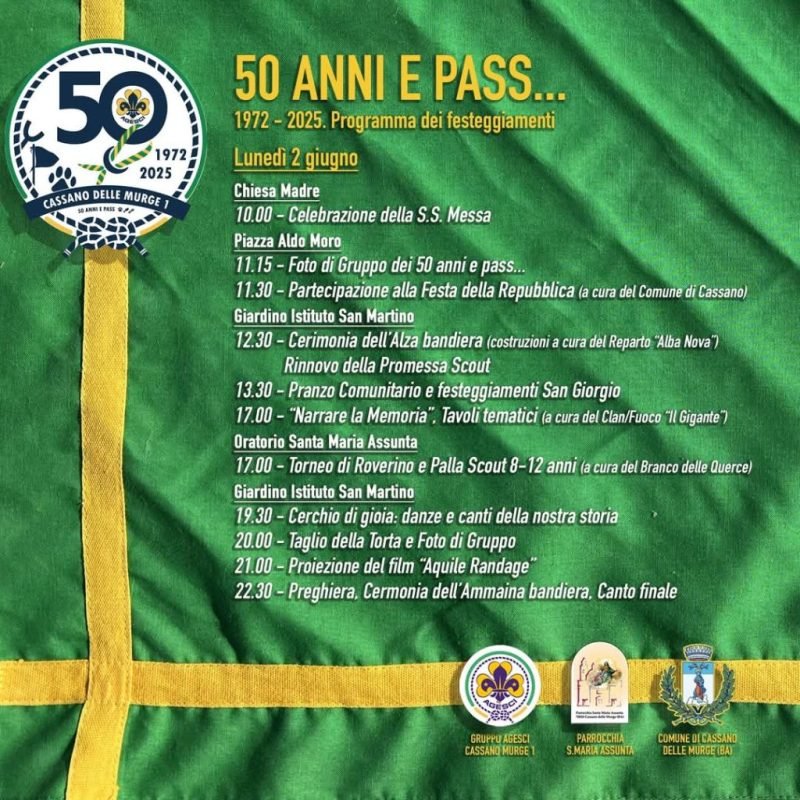 Il 2 giugno 2025 sarà una giornata indimenticabile per il Gruppo Agesci Cassano delle Murge 1, che festeggerà cinquant’anni di avventure, emozioni, crescita personale e servizio.