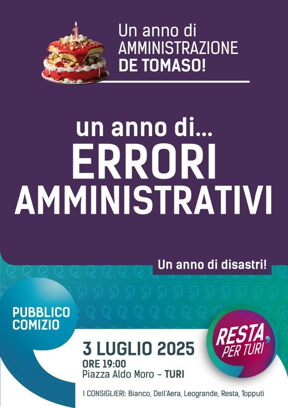 L’articolo “Un anno di disastri”, pubblico comizio della minoranza proviene da Turi – La Voce del Paese.