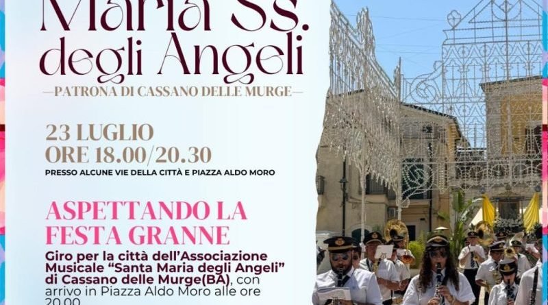 Inizia oggi 23 luglio la novena di preparazione alla Festa Patronale della Madonna degli Angeli, che Cassano celebra nei primi quattro giorni di agosto.