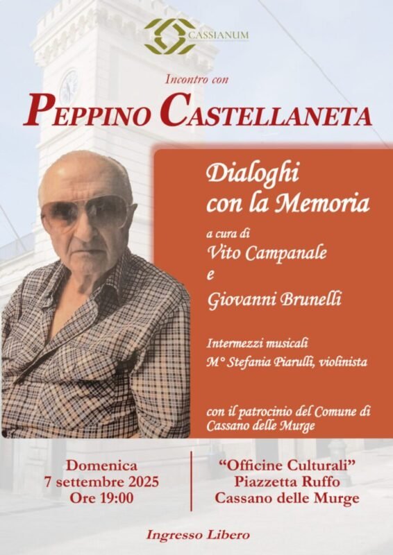 L’Associazione “Cassianum” lancia una nuova iniziativa: i “Dialoghi con la memoria”, incontri con chi detiene la memoria storica della comunità cassanese che va custodita, preservata e tramandata ai posteri.
