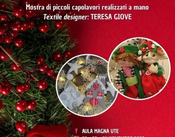 A poco più di un mese dalle festività natalizie, l’UTE (Università della Terza Età) di Cassano delle Murge si prepara a trasformare la sua sede in un incantevole villaggio delle meraviglie. Dal 22 al 24 novembre, le stanze dell’Università accoglieranno la straordinaria mostra artistica “ASPETTANDO IL NATALE TRA SOGNO E CREATIVITÀ“, a cura della textile designer Teresa Giove.