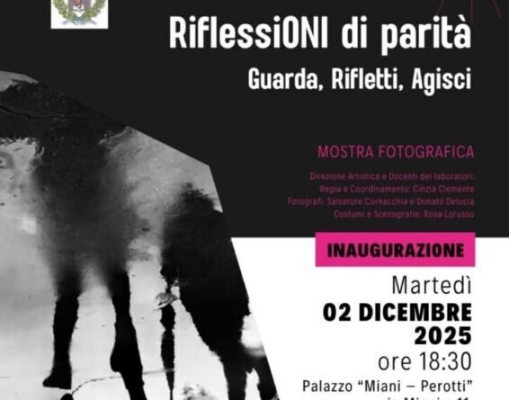 La mostra “Riflessioni di Parità” prosegue il suo cammino con la terza tappa a Cassano delle Murge, nell’ambito del progetto “Futura” del Consiglio Regionale della Puglia, dedicato alla promozione della parità di genere e alla sensibilizzazione sui diritti umani.
