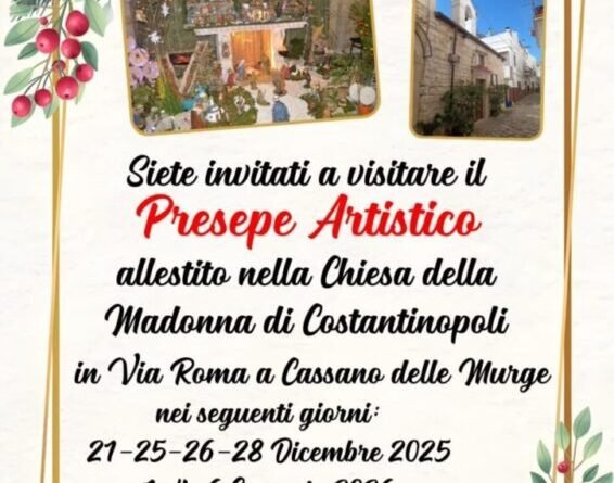 Tutto pronto per l’apertura del presepe artistico allestito nella Chiesa della Madonna di Costantinopoli. In via Roma si respira aria natalizia…..vi aspettiamo numerosi per la visita a partire da domani mattina mentre la mattina di natale, in chiesa madre sarà benedetto Gesù bambino durante la messa del fanciullo delle ore 10 per poi portarlo al presepe nella chiesetta.