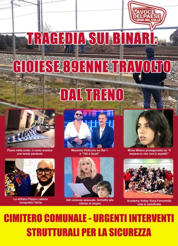 Tragedia sui binari. Gioiese 89enne travolto dal treno