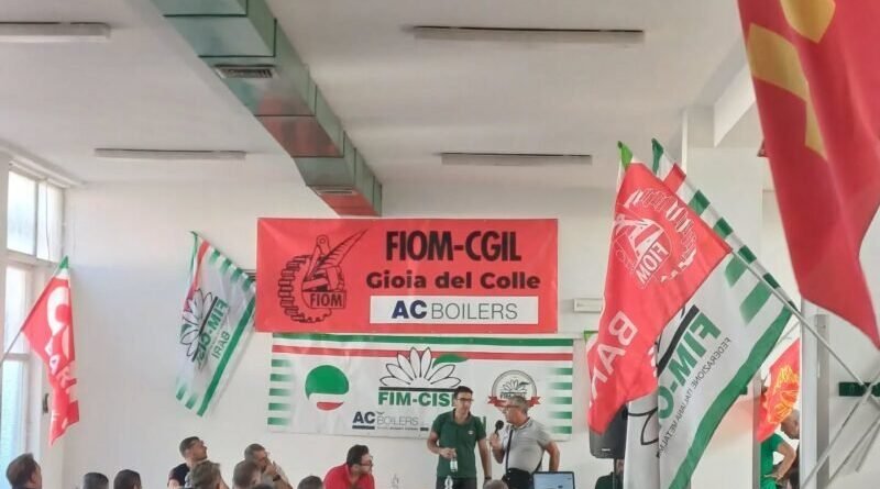 I lavoratori dell’AC Boilers di Gioia del Colle ancora non hanno informazioni sul loro futuro lavorativo. Si attende l’esito dell’udienza presso il Tribunale di Milano, rinviata perché dovrebbero essere state richieste ulteriori garanzie, non sappiamo se di natura finanziaria o tecnica, per condurre in porto la cessione dalla società Sofinter ad un nuovo gruppo industriale.