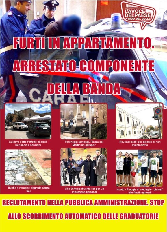 Furti in appartamenti. Incastrato il complice del tentato furto a Gioia