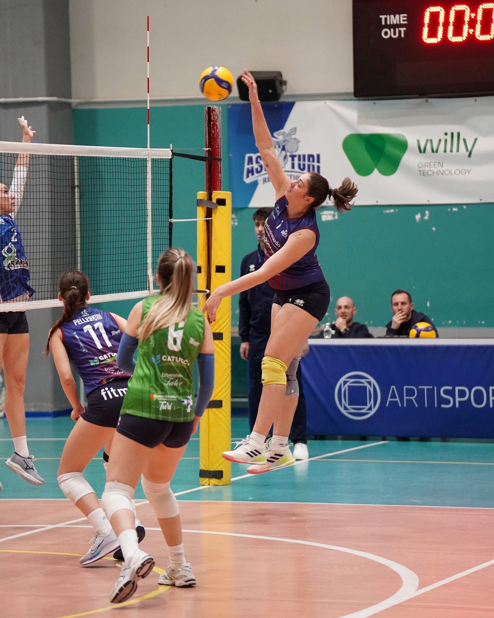 Regna l’equilibrio nel primo set dove nessuna delle due compagini riesce a prendere il sopravvento netto; si arriva così alla fase calda del set con il Turi che non concretizza i primi due set point, per poi cedere alla prima occasione gioiese per 25 a 27.