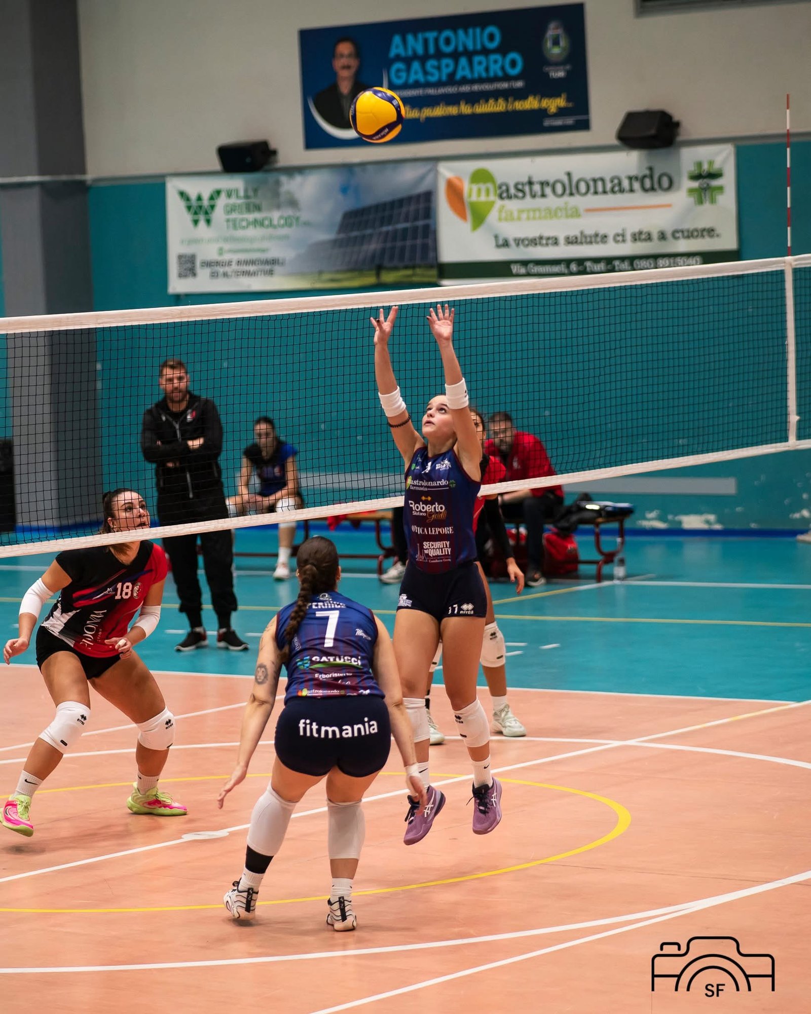 Il tecnico biancoazzurro Giuseppe Mangini, recupera Alejandra Rodriguez, out per un problema alla spalla da un mese e schiera il sestetto  di partenza per il Turi con Francesca Pellegrini al palleggio, capitan Rodriguez appunto fuori mano, Giorgia Barbone e Samuela Andresini schiacciatrici, Anna D’Onofrio e Miriana Pernice dal centro e Sofia Coppi nel ruolo di libero.