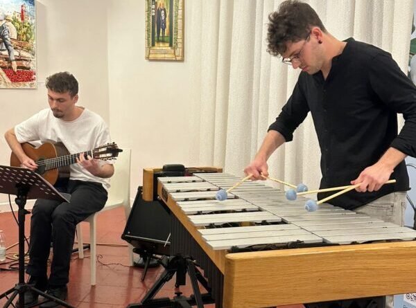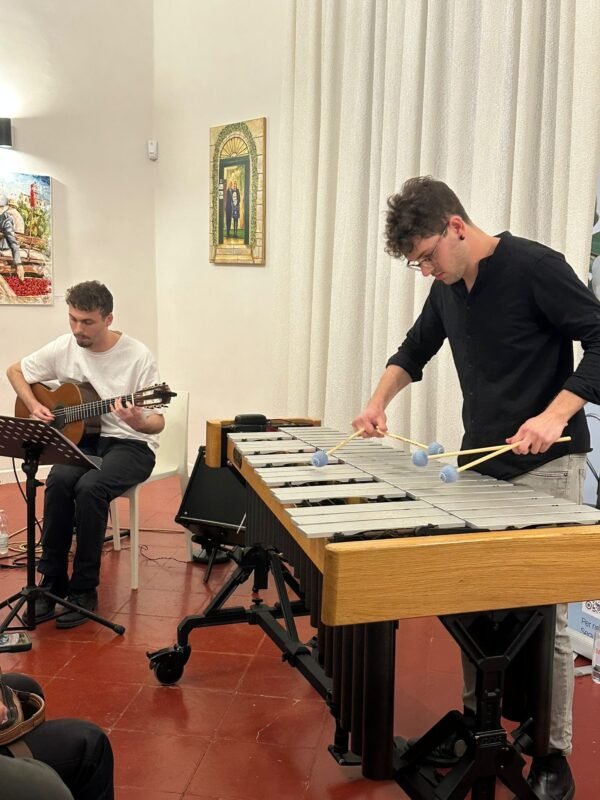 A presentare l’evento è stato il Maestro Ferdinando Redavid, che ha introdotto i due giovani protagonisti della serata: Vito Antonio Gasparro al vibrafono e Marco Cutillo alla chitarra classica. Due artisti giovanissimi ma già dotati di una maturità interpretativa sorprendente, capaci , come ha sottolineato con entusiasmo il padrone di casa, il dottor Emanuele Ventura, di portare una ventata di novità in grado di riempire di gioia chiunque li ascolti.