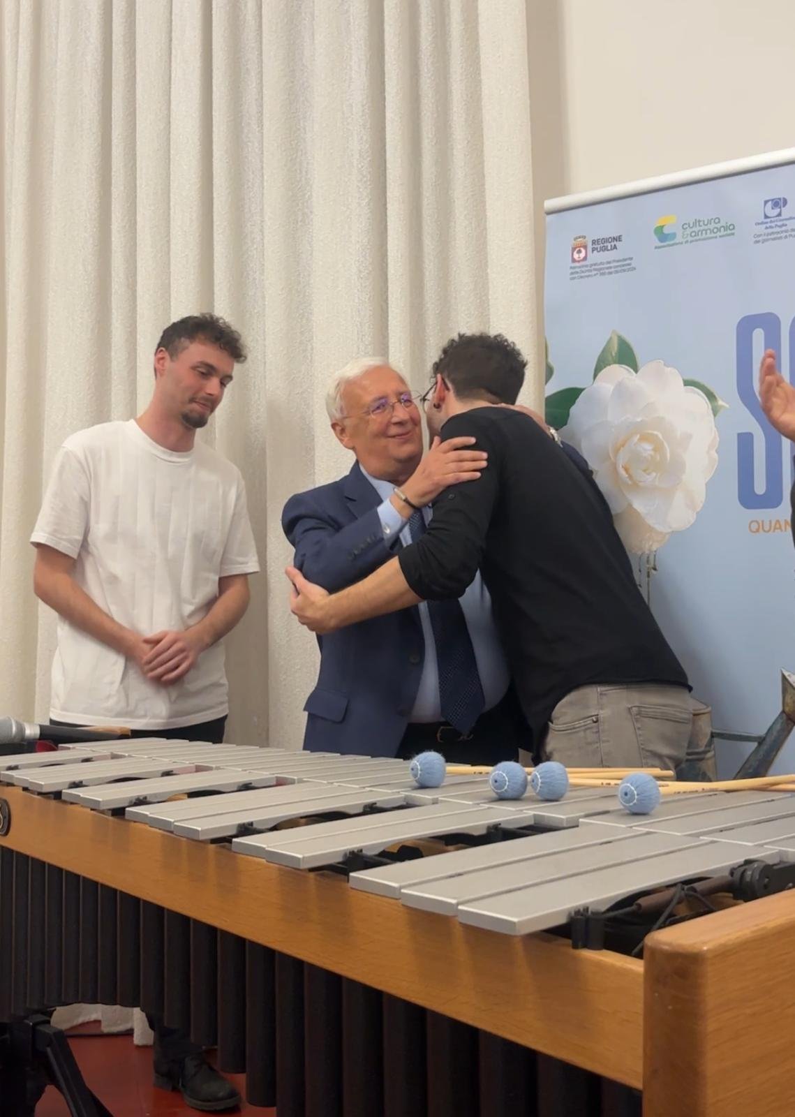 Protagonista indiscusso della scena è stato il vibrafono, strumento che ha destato molta curiosità tra i presenti, tanto da essere simpaticamente ribattezzato dal dottor Ventura un “organo al contrario”. Le sue camere d’aria metalliche hanno riempito la sala di suoni cristallini e avvolgenti, lasciando il pubblico visibilmente affascinato.