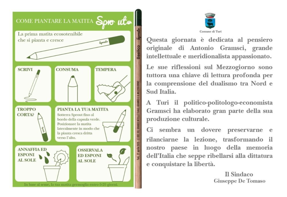 Come sottolineato dal sindaco, preservare e rilanciare la lezione di Gramsci significa trasformare Turi in un luogo della memoria, della cultura e della libertà, valorizzando l’eredità di un pensatore che seppe ribellarsi alla dittatura e contribuire alla conquista della democrazia.